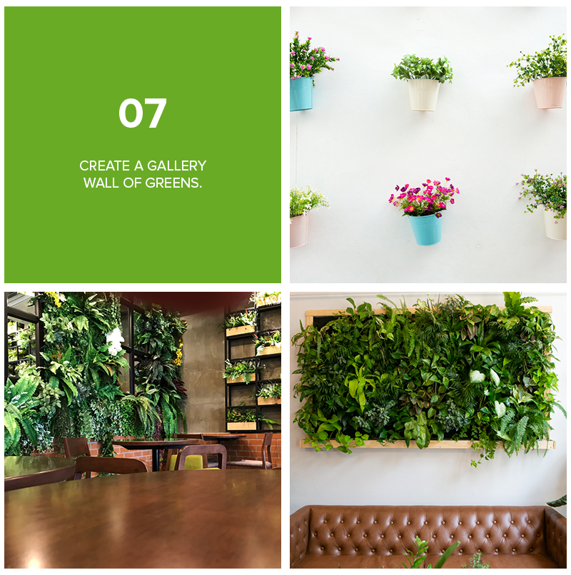 If you have any areas in your home that look lonely and unfilled, adding different layers of plants may actually do the trick. Instead of adding a potted plant on the stairs landing, why not place some pretty foliage on the wall flanking the stairs? If you have high cabinets with an unused empty space on top, add some planters in there to create a lush backdrop.